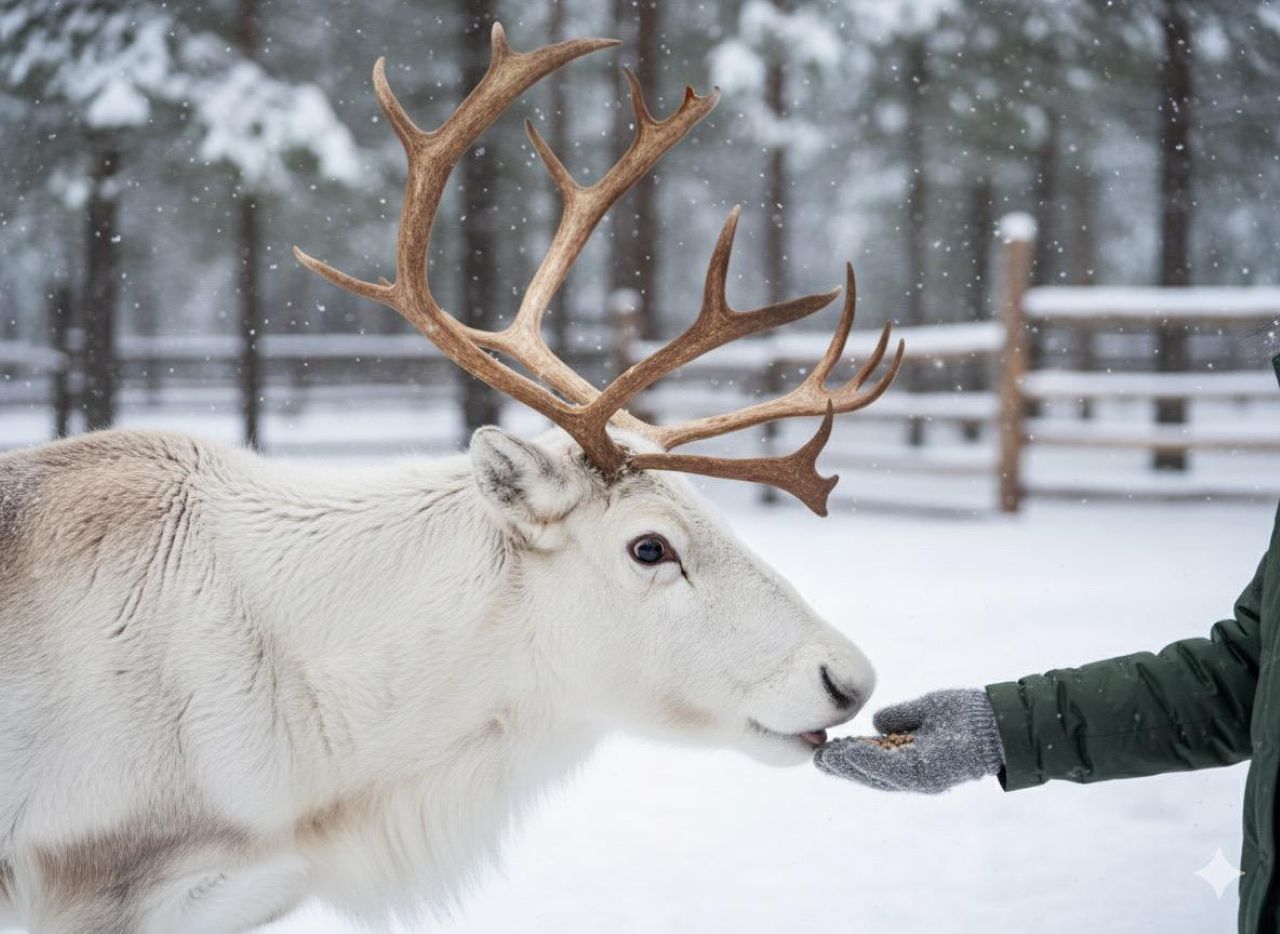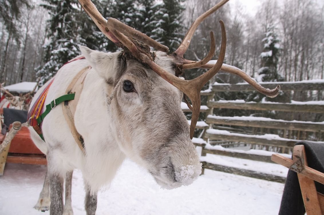 Snuggle up in the reindeer-drawn sleigh and let the gentle sound of hooves on the snow create a peaceful atmosphere.